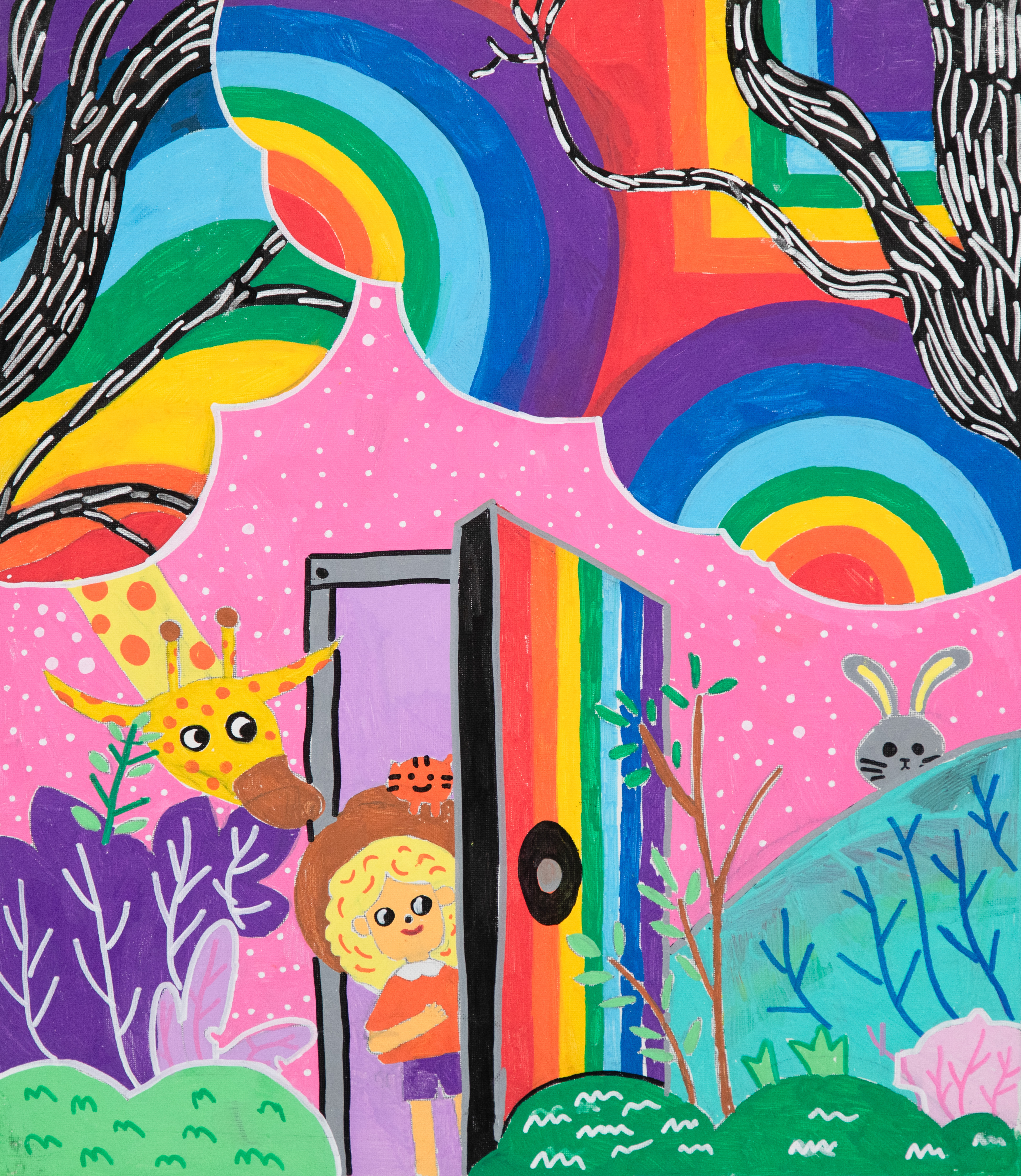 this piece captures the artist’s first step into a rainbow-filled forest,