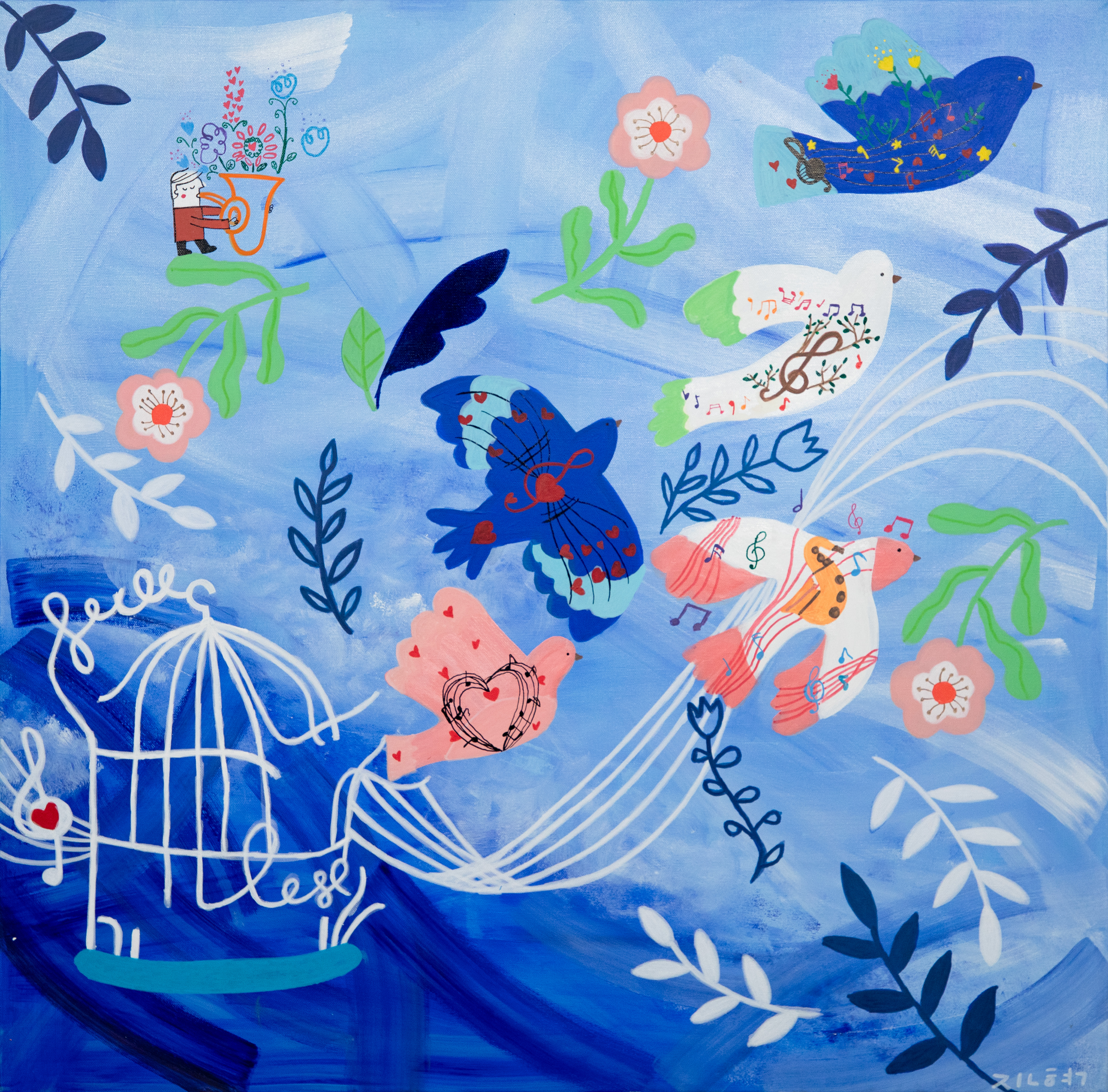 새장 속 새가 문을 열고 자유를 찾아 날아갑니다. 어떤 힘겨움도 없이, 음악의 치유하는 힘에 이끌려 자유롭고 평화롭게 힘든 날들로부터 벗어나 날아갑니다.