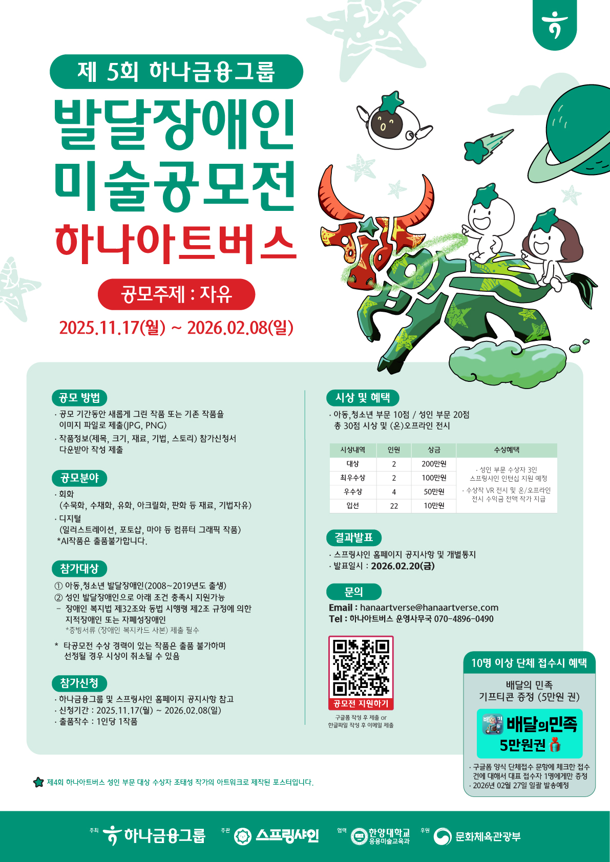 하나 아트버스는 하나금융그룹이 함께하는 발달장애인 미술 공모전입니다.